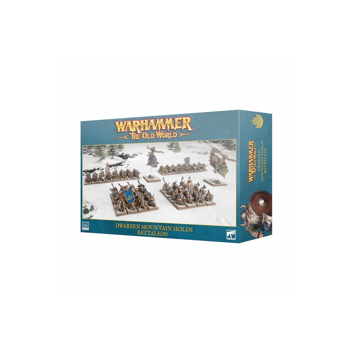 Cette boîte fournit un noyau équilibré de 66 figurines en plastique pour constituer une redoutable armée des Forteresses des Montagnes Naines. Elle constitue un excellent point de départ pour une nouvelle force ou un moyen simple de renforcer une armée existante. Le cœur des troupes de mêlée se compose de blocs de Guerriers Nains, armés de haches et de boucliers ou de haches à deux mains, avec des options permettant de former deux états-majors complets. Ils sont soutenus par un nombre équivalent de soldats armés à distance, pouvant être assemblés en Arbalétriers (Quarrellers) ou en Arquebusiers (Thunderers), eux aussi dotés d’options pour deux groupes de commandement complets. L’ensemble est complété par deux Gyrocoptères, pouvant alternativement être assemblés en Gyrobombardiers, afin de pilonner l’ennemi depuis les airs et neutraliser les cibles les plus résistantes.