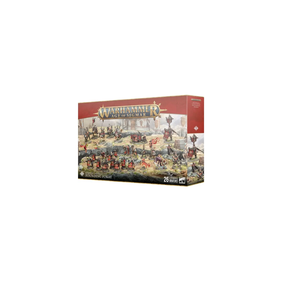 Lancez votre Croisade Économe avec la boîte Founding Foray, le point de départ idéal pour toute armée des Cities of Sigmar. Ce coffret massif rassemble une force d'infanterie et de cavalerie disciplinée, prête à reprendre les Royaumes Mortels au nom de l'Empereur-Dieu.