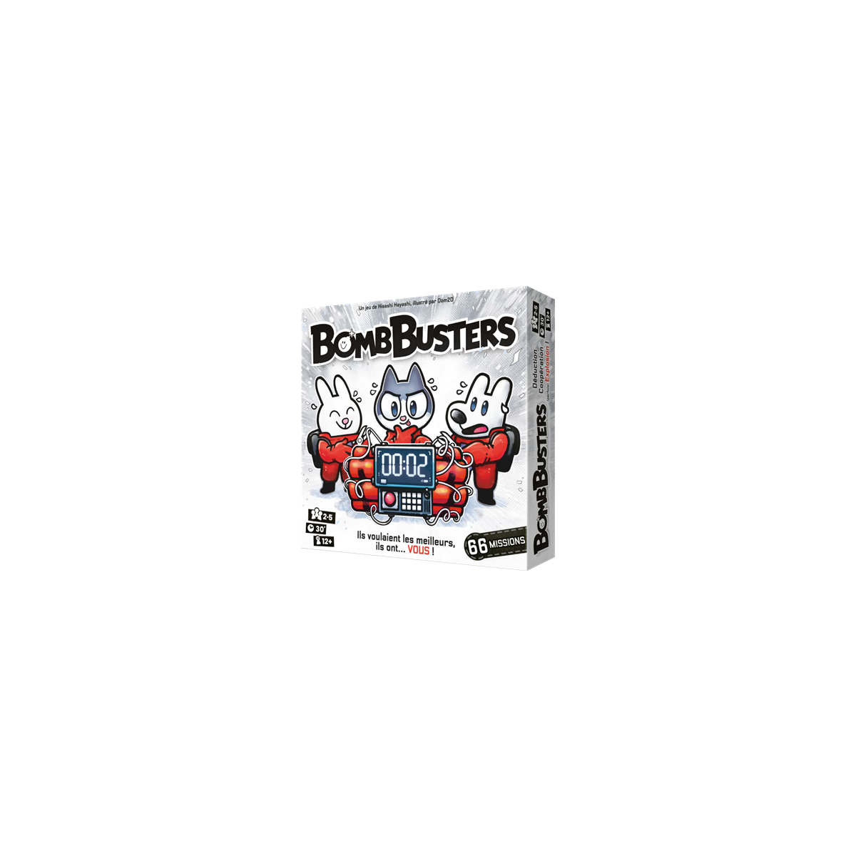 BOMB BUSTERS est un jeu de société coopératif passionnant qui mettra vos compétences de déduction et de communication à l’épreuve. Le principe est simple : vous incarnez une équipe de démineurs et devez désamorcer une bombe en coupant les fils. Cependant, cette simplicité s’efface rapidement pour faire place à des subtilités de plus en plus dures ! Eh oui, car ce jeu vous propose d’augmenter votre niveau : serez-vous une équipe à la hauteur ?