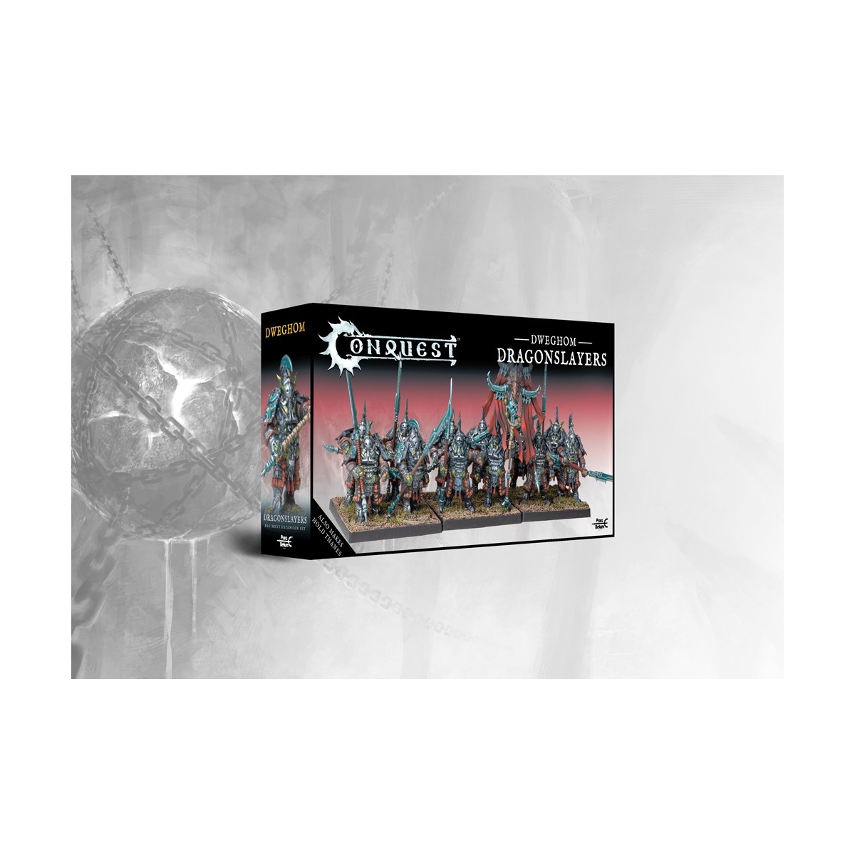 Les tueurs de dragons sont une force légendaire parmi les Dweghom. Ils sont vêtus d'une armure forgée à l'époque où les dragons étaient la plus grande menace pour les guerriers, et chaque partie vulnérable de leur corps est protégée par des alliages rares et puissants. Leurs armes, forgées en adamantine et trempées dans le sang de dragon, sont capables de percer les peaux presque invulnérables des Dragons Anciens. Seuls les Thanes les plus accomplis peuvent prétendre au rang de tueur de dragons, et leur ascension à ce titre doit être approuvée par l'acclamation unanime de leurs pairs. Leur valeur et leurs prouesses sont si indéniables que même les plus grands guerriers Dweghom ne contesteraient pas leur place parmi les forces d'élite.