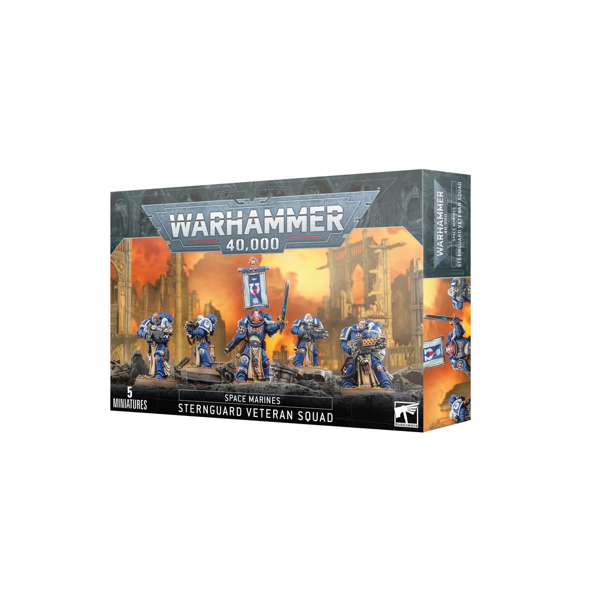 Ce kit plastique permet d'assembler cinq Vétérans Sternguard, des tireurs d'élite space marine disciplinés. Chaque Vétéran peut être équipé d'un fusil bolter ou d'une arme combinée, et l'un peut autrement porter soit un bolter lourd soit un pyrocanon. Vous pouvez également assembler un Sergent avec une bannière ou un symbole monté sur son paquetage dorsal, et qui peut être doté d'une arme énergétique, d'une épée tronçonneuse ou d'un gantelet énergétique en plus de son fusil bolter.
