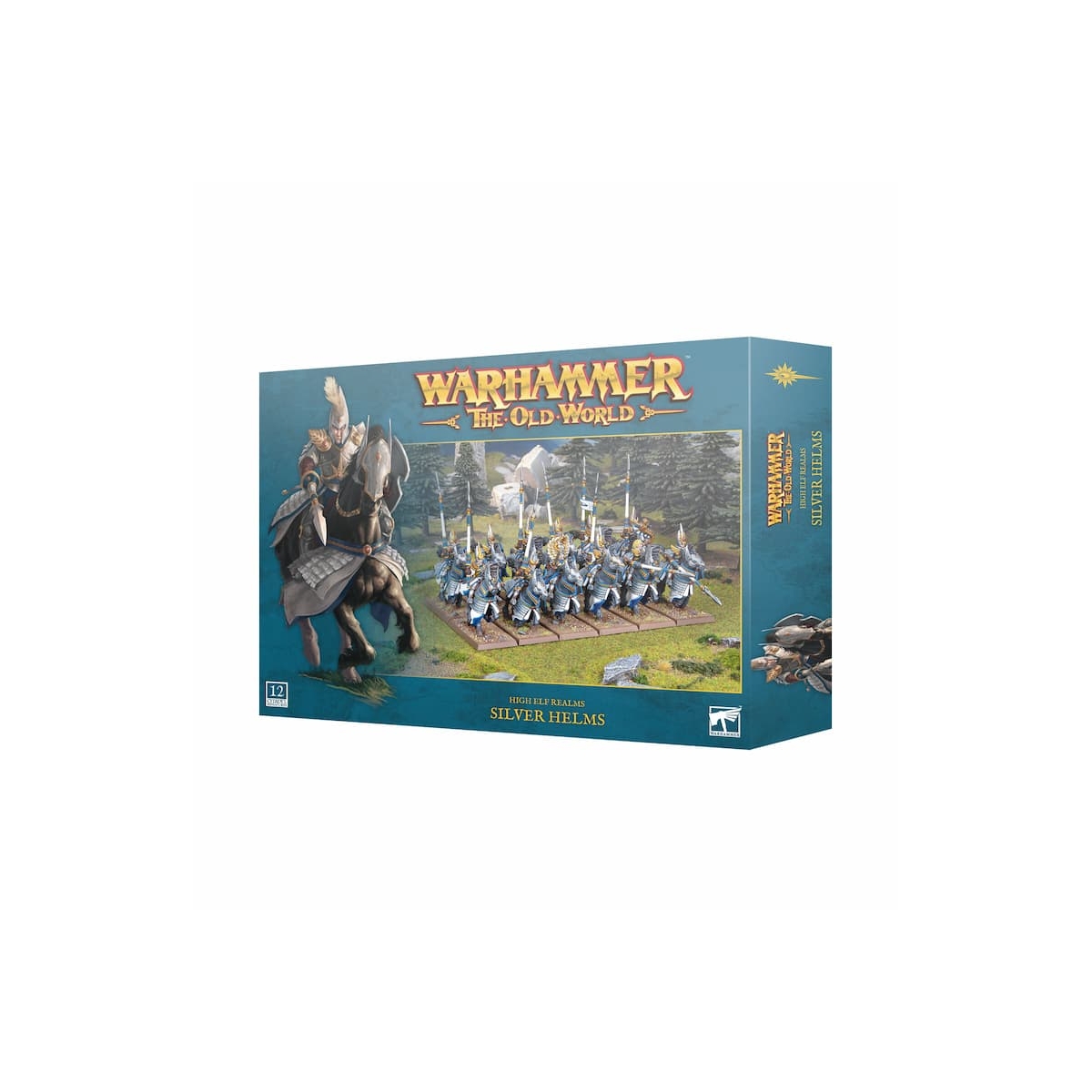 Silver Helms est une boîte de 12 figurines en plastique représentant une unité de cavalerie lourde pour les armées de High Elf Realms. Ces guerriers montés et leurs chevaux portent de brillantes cottes d’écailles, de hauts boucliers et des lances, pour former une unité aussi élégante que redoutable sur le champ de bataille.