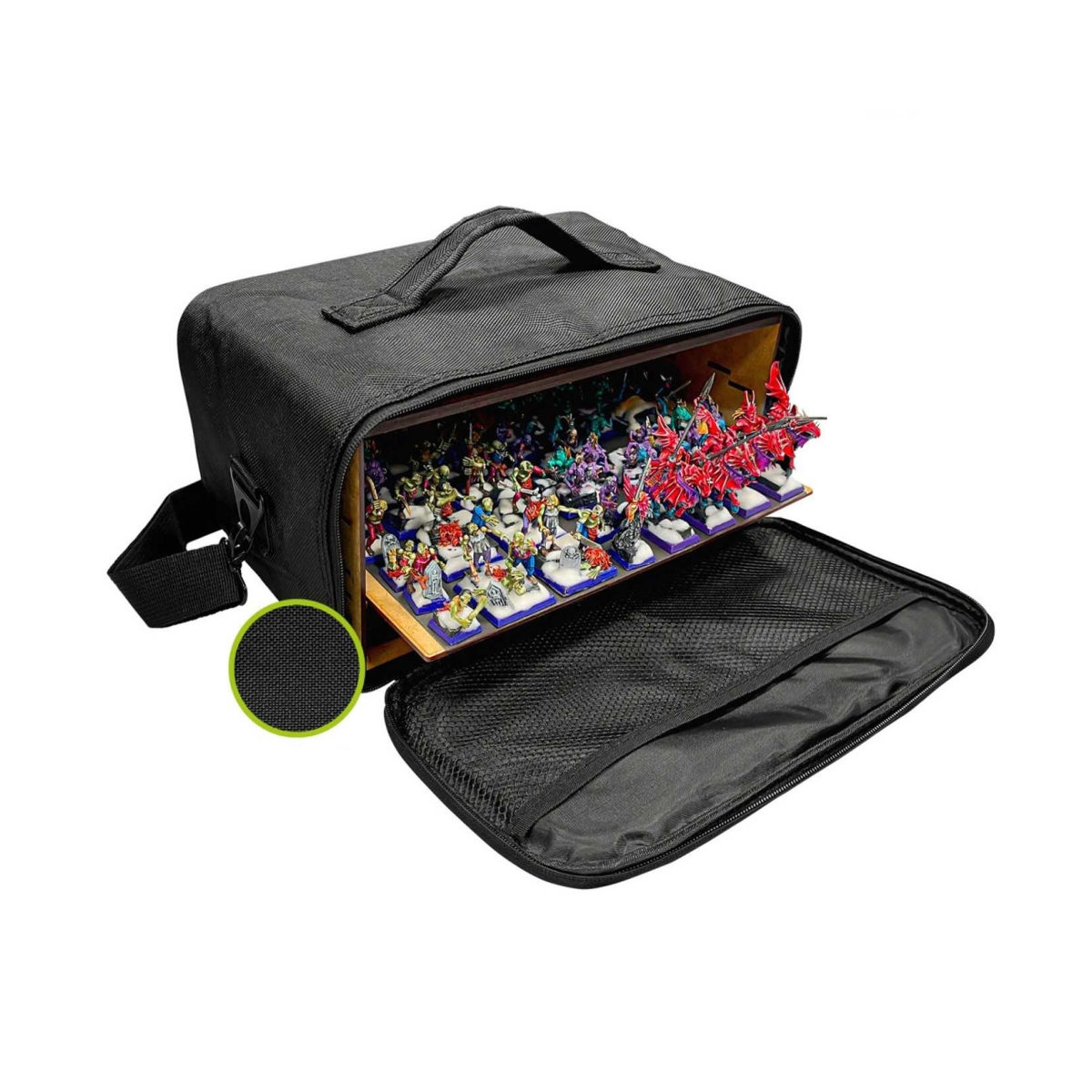 Le sac de transport ARMY a été spécialement conçu pour protéger vos figurines pendant le transport. Réalisé en tissu Oxford léger, résistant et rembourré pour une plus grande durabilité, il vous permettra de transporter plus de 54 miniatures en toute sécurité réparties sur ses 2 niveaux.