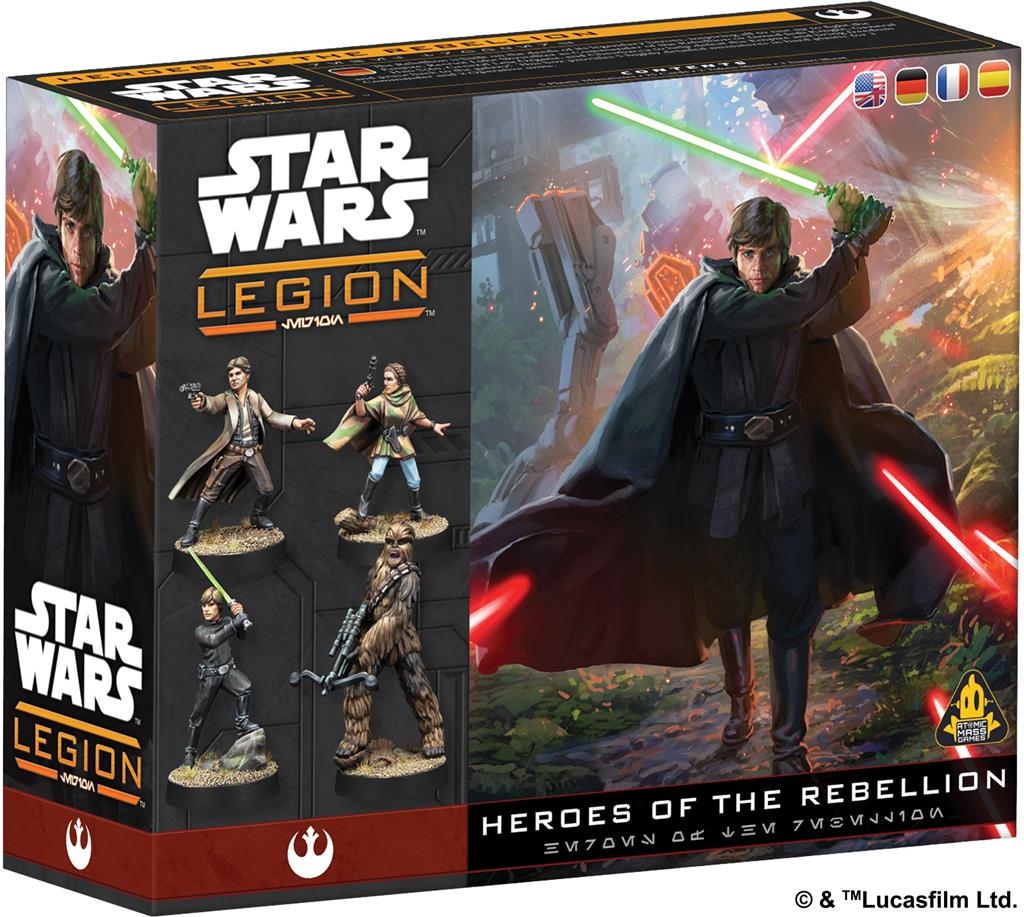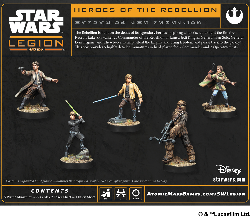 La Rébellion peut compter sur les exploits de ses héros légendaires, afin d’inspirer ceux qui souhaitent se soulever contre l’Empire. Recrutez Luke Skywalker en tant que Héros de la Rébellion ou comme Chevalier Jedi de renom, et ajoutez à votre armée les Généraux Han Solo et Leia Organa, sans oublier le farouche Chewbacca. Ils vous aideront à vaincre l’Empire et à ramener la paix dans la galaxie. Cette boîte contient 5 figurines finement sculptées en plastique dur, afin de constituer 3 unités de Commandant et 2 unités d’Agent.