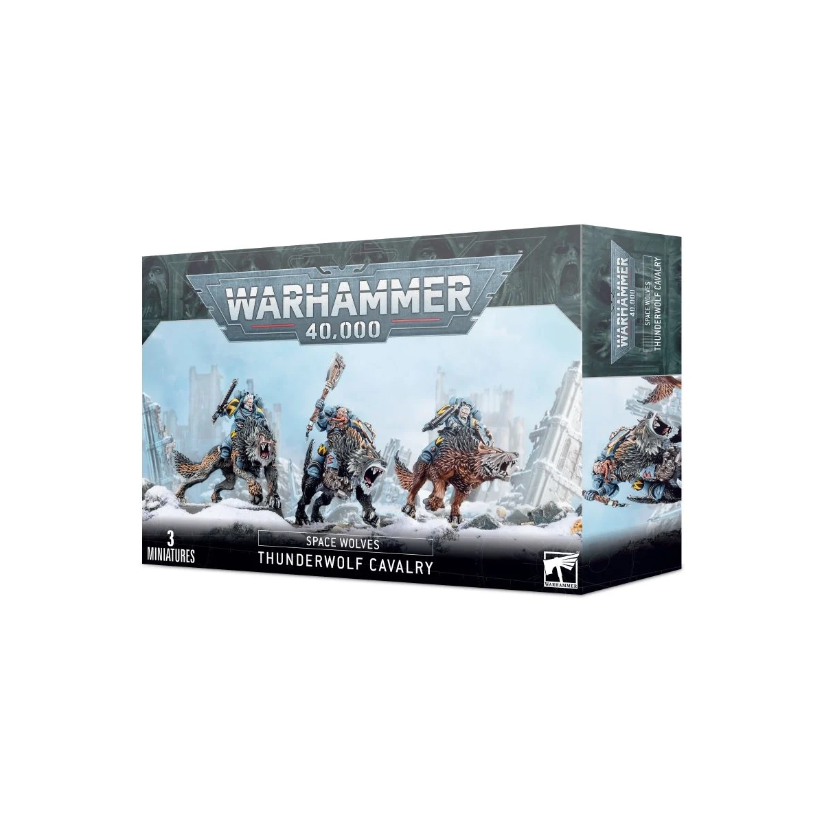 Des montagnes du Maelstrom viennent les mythiques Thunderwolves, des bêtes énormes aux mâchoires capables de broyer l'acier. Il existe quelques exemples de Space Wolves ayant traqué et “dompté” un Thunderwolf dans une version extrême de la Chasse Solitaire. Cette pratique a donné naissance à la légendaire Thunderwolf Cavalry, une force d’élite réduite mais implacable, recrutée parmi les rangs des Wolf Guards, mais curieusement absente des archives officielles de l’Imperium.