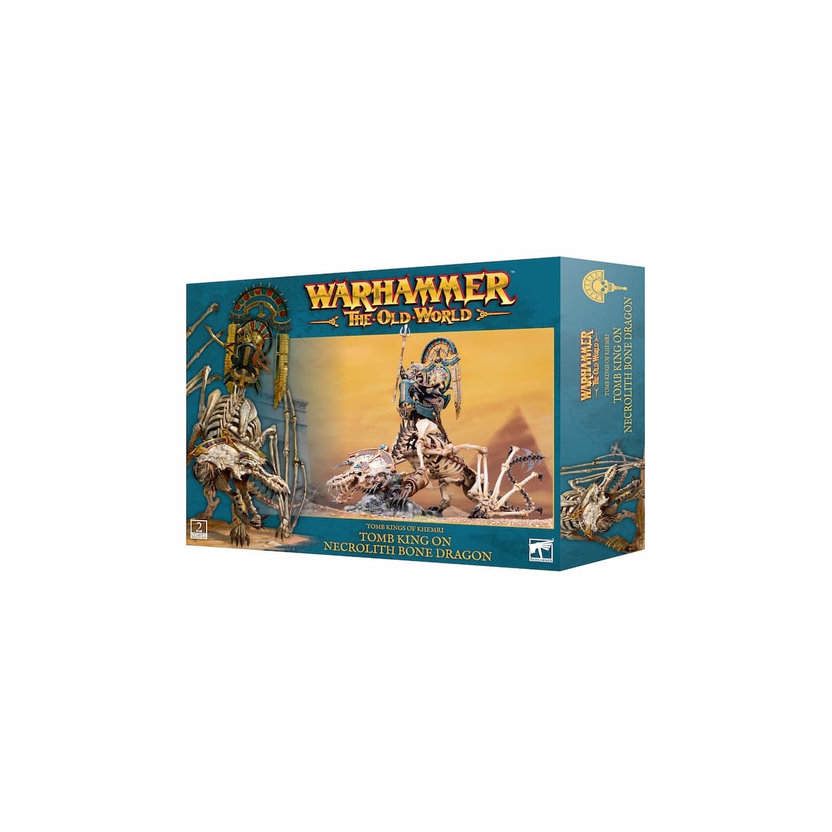 Warhammer: The Old World, dans l’univers de Warhammer Fantasy. Les Tomb Kings sont les anciens souverains de Nehekhara, revenus d’entre les morts grâce aux rituels ancestraux des Liche Priests. Seuls les plus prestigieux d’entre eux peuvent dompter la volonté éternelle d’un redoutable Necrolith Bone Dragon et partir au combat à dos d’une telle créature.