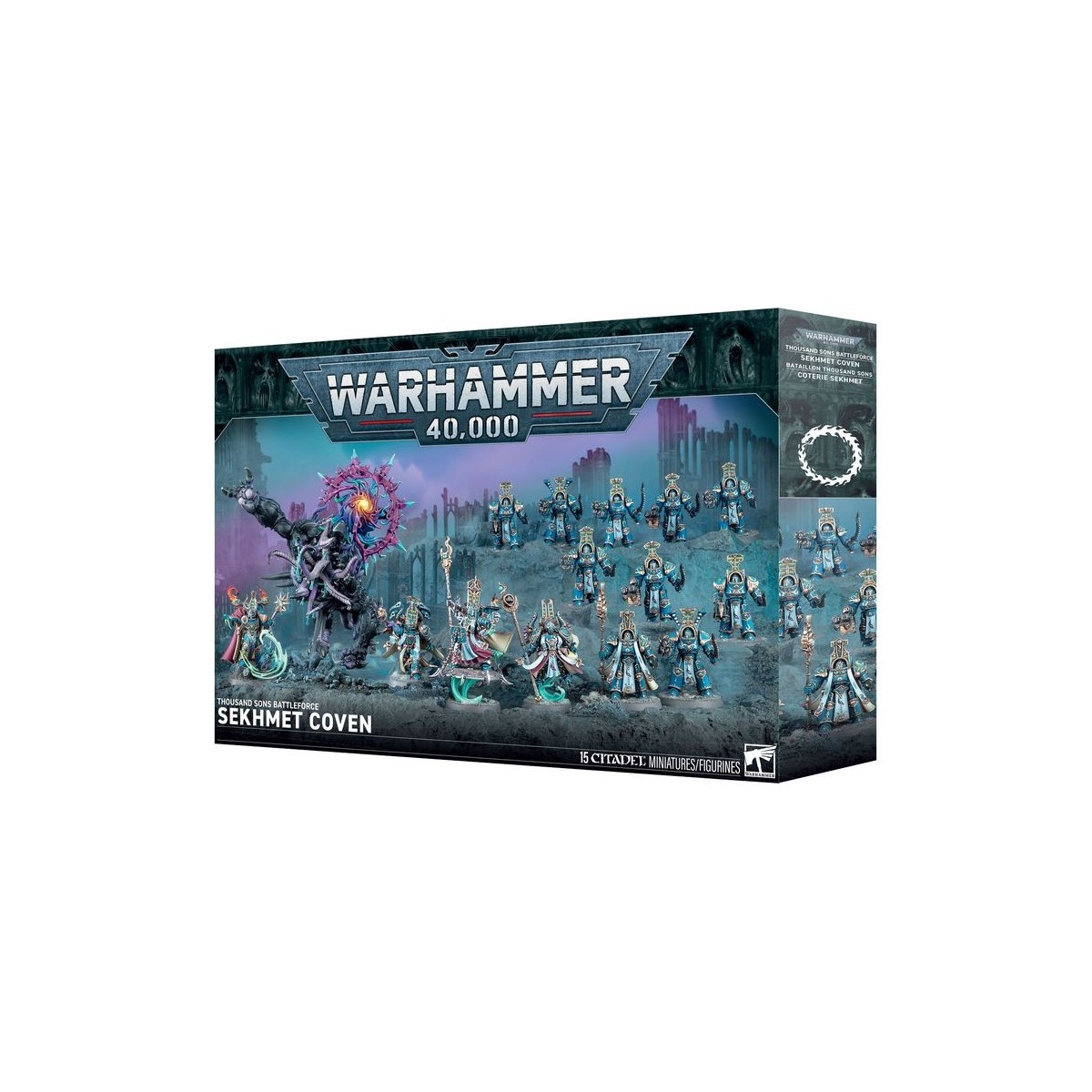 Ce coffret massif est idéal pour débuter une nouvelle collection de Thousand Sons – ou pour agrandir une armée existante – afin de les déchaîner dans vos parties de Warhammer 40,000. C'est également une excellente opportunité de réaliser une économie importante par rapport à l'achat des kits séparés.