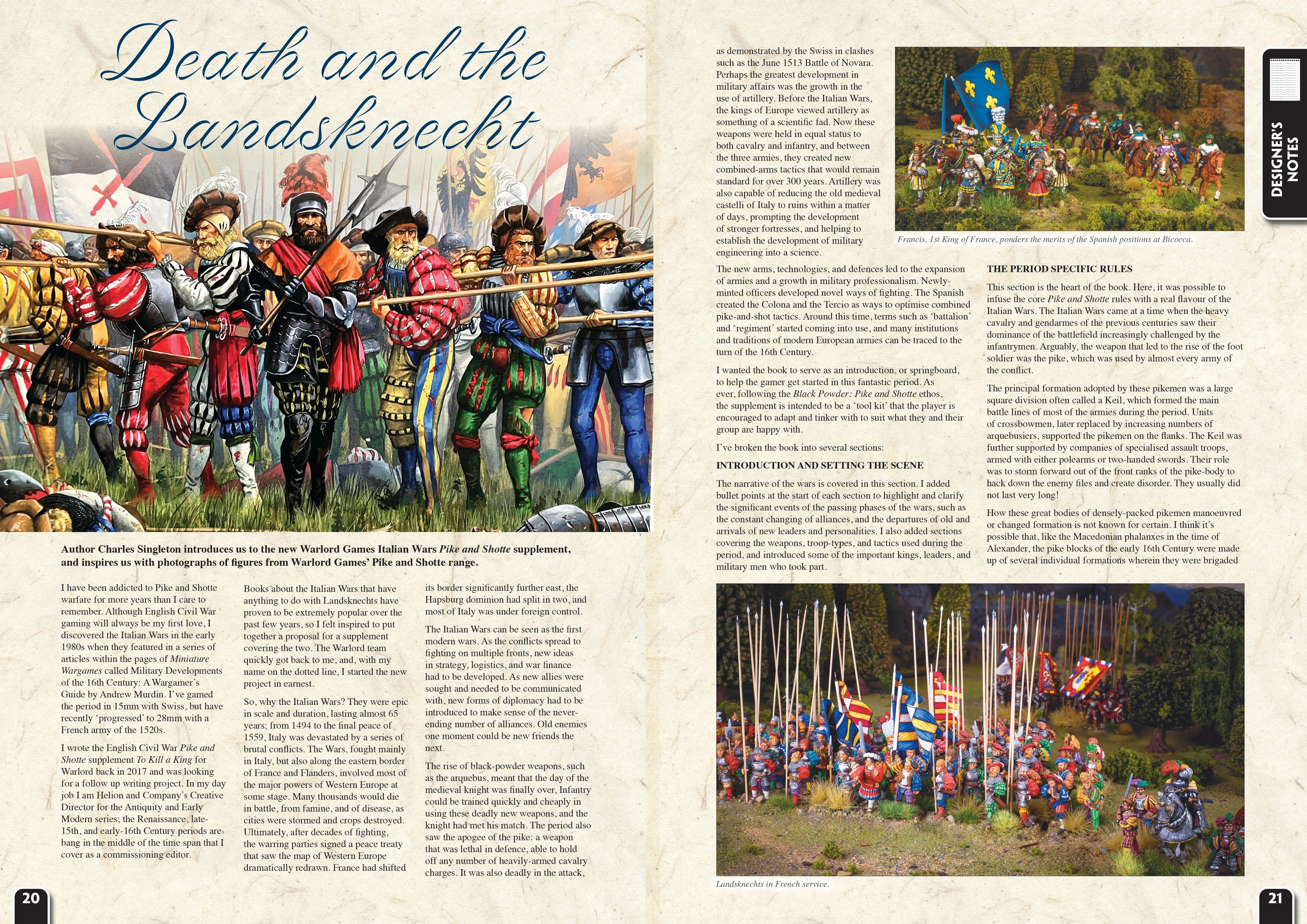 L'auteur Charles Singleton nous présente le nouveau supplément pour Pike and Shotte (Warlord Games) dédié aux Guerres d'Italie.