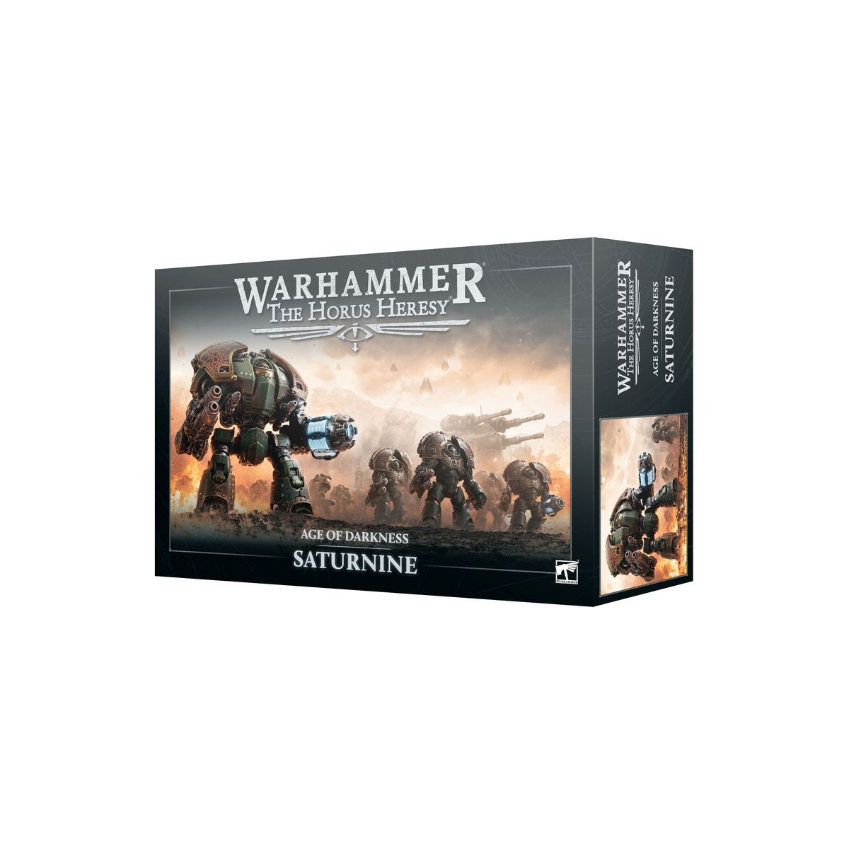 La boîte Warhammer: The Horus Heresy – Saturnine contient un véritable trésor : un livre de règles détaillant le lore et le contexte de cette guerre civile galactique, de magnifiques photographies et illustrations, ainsi que les règles de base nécessaires pour jouer. La boîte contient également 50 figurines en plastique — dont un imposant Dreadnought Saturnine et une légion de Space Marines en armure MKII "Crusade" — vous permettant de construire deux forces opposées prêtes à jouer, ou de commencer votre propre Légion.