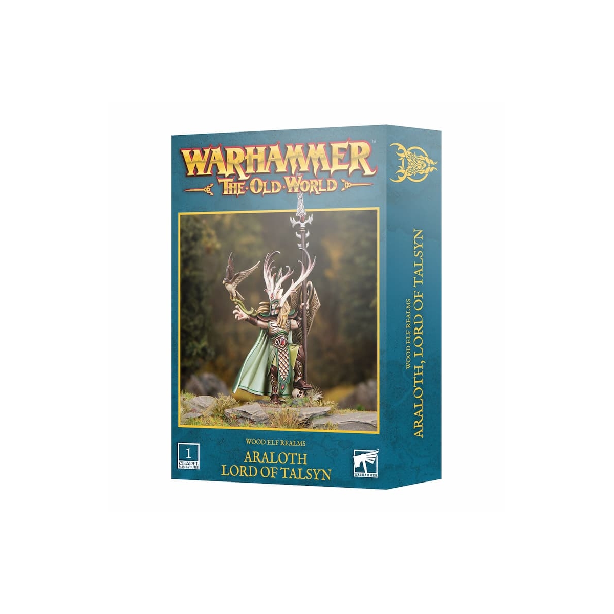 Araloth est un héros majeur des Wood Elf Realms, annoncé par la prophétie comme un protecteur destiné à défendre son peuple contre les ténèbres à venir. Reconnu comme un grand champion par la reine Ariel, il combat toujours aux côtés de Skaryn, son fidèle faucon de chasse, qui lui a autrefois sauvé la vie.